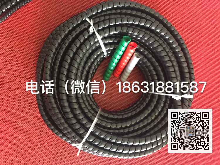 正恒螺旋保護套為螺旋狀 具有很好的彈力、拉伸力 可以對液壓膠管、電線、電纜等內部產品起到很好的束縛作用。目前國內采用的原材料為聚丙烯(PP)、聚乙烯(PE)或尼龍(PA),使產品具有很好的耐磨作用。此外,螺旋保護套還具有良好的耐高低溫 耐油、抗紫外線 抗靜電、抗沖擊、抗拉伸等性能。